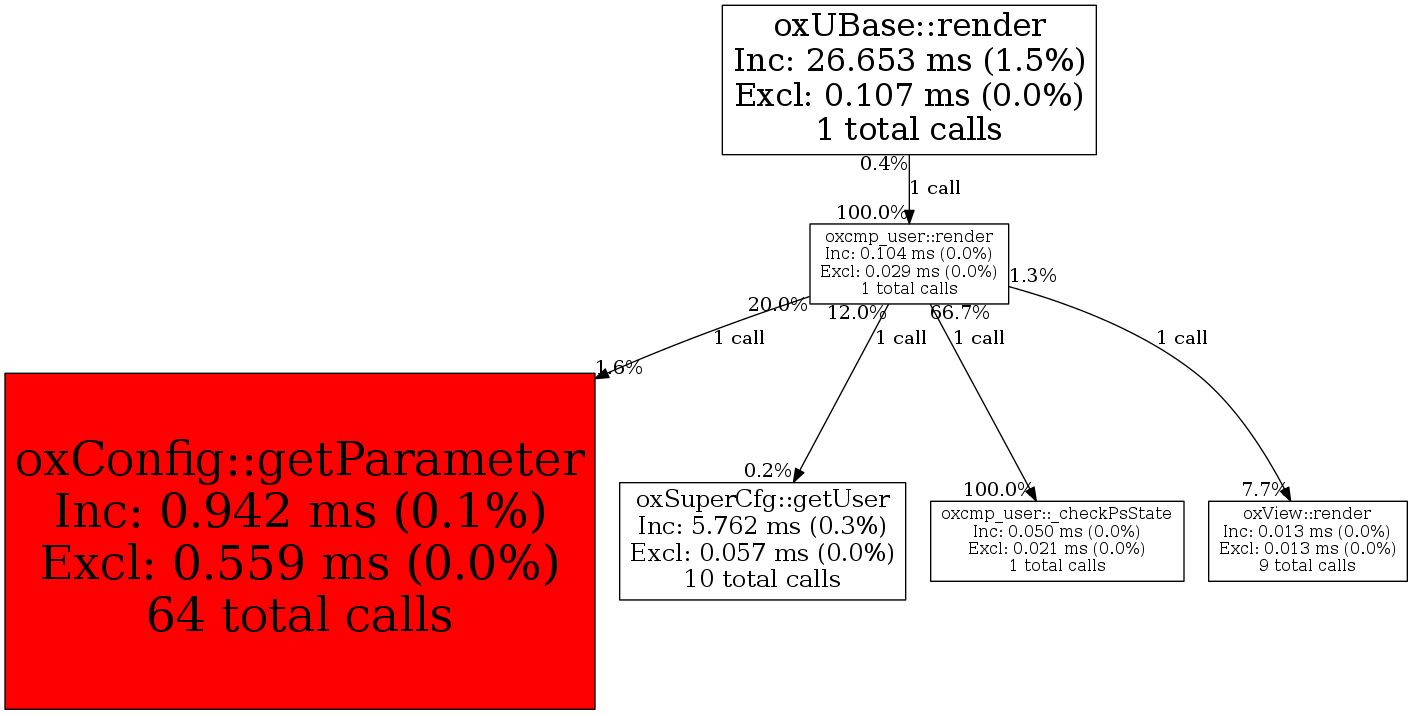| oxUBase::render | 1 | 100.0% | 104 | 100.0% | 0 | N/A% | 14,968 | 100.0% | 13,288 | 100.0% |