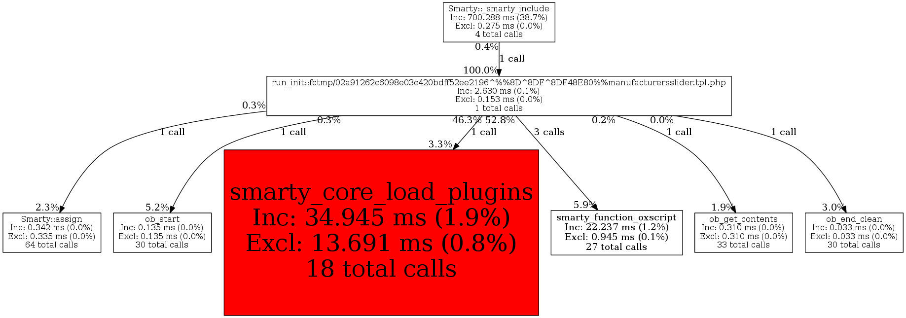 | Smarty::assign | 1 | 12.5% | 8 | 0.3% | 0 | 0.0% | 1,304 | 3.2% | 488 | 0.4% |