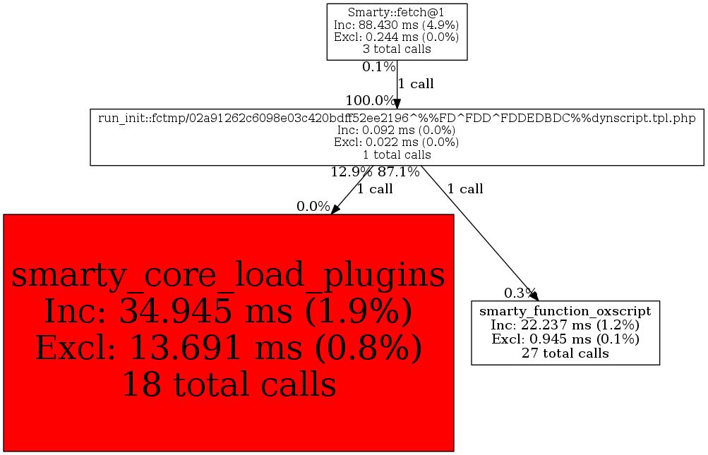 | Smarty::fetch@1 | 1 | 100.0% | 92 | 100.0% | 0 | N/A% | 1,352 | 100.0% | 0 | N/A% |