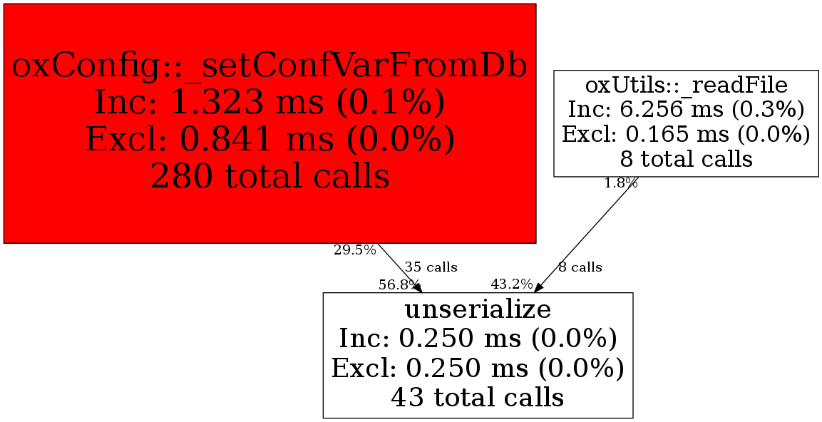 | oxConfig::_setConfVarFromDb | 35 | 81.4% | 142 | 56.8% | 0 | N/A% | 83,584 | 64.1% | 164,184 | 98.8% |