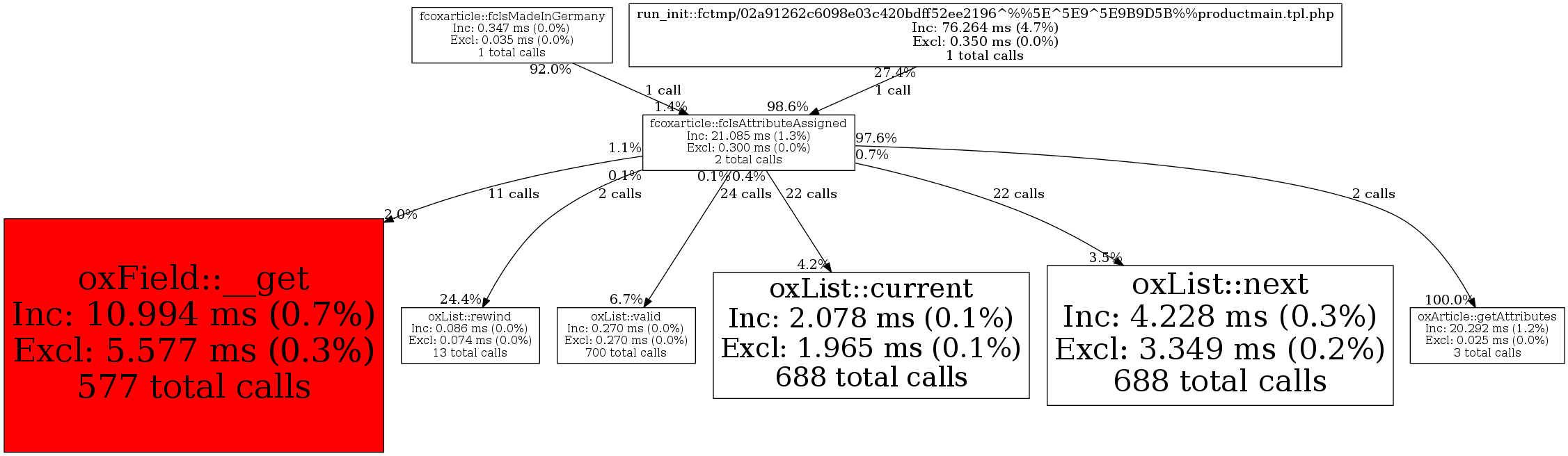 | oxField::__get | 11 | 13.3% | 219 | 1.0% | 0 | 0.0% | 2,432 | 0.9% | 3,632 | 1.8% |