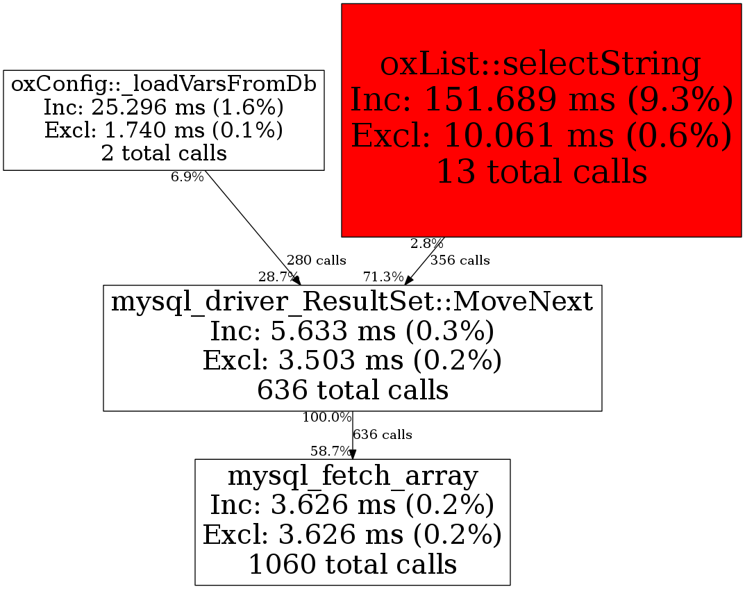| oxConfig::_loadVarsFromDb | 280 | 44.0% | 1,618 | 28.7% | 0 | 0.0% | 68,224 | 22.8% | 23,792 | 12.8% |