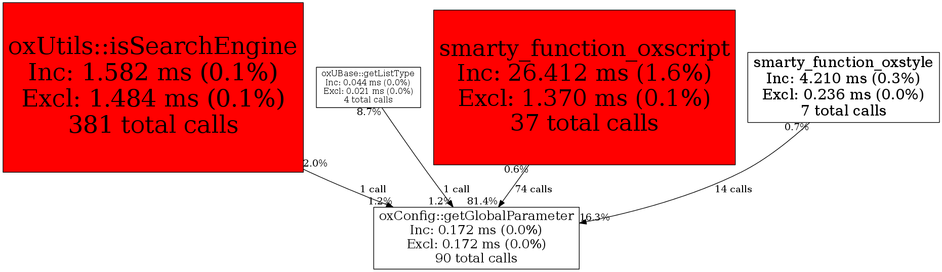 | oxConfig::getGlobalParameter | 90 | 93.8% | 172 | 0.0% | 0 | 0.0% | 5,648 | 0.0% | 2,272 | 0.0% |