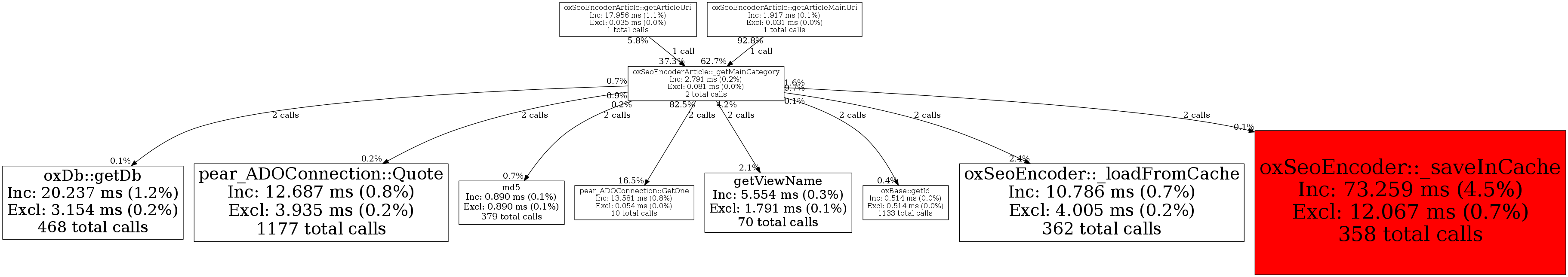 | oxSeoEncoderArticle::_getMainCategory | 2 | 8.3% | 2,791 | 0.2% | 0 | 0.0% | 32,520 | 0.2% | 21,552 | 0.1% |