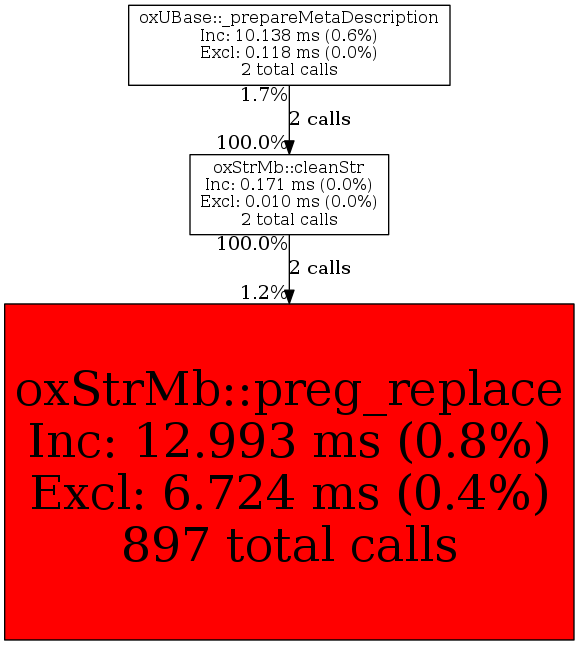 | oxUBase::_prepareMetaDescription | 2 | 100.0% | 171 | 100.0% | 0 | N/A% | 3,944 | 100.0% | 3,576 | 100.0% |