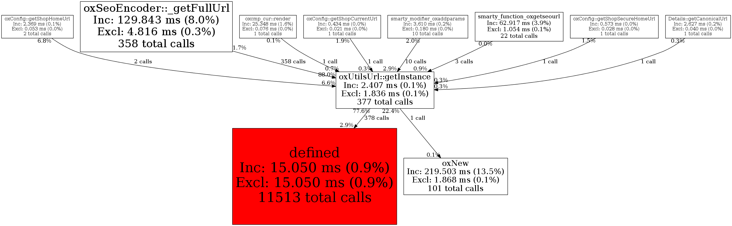 | oxUtilsUrl::getInstance | 377 | 49.5% | 2,407 | 0.1% | 8,001 | 1.2% | 12,768 | 0.1% | 8,344 | 0.0% |