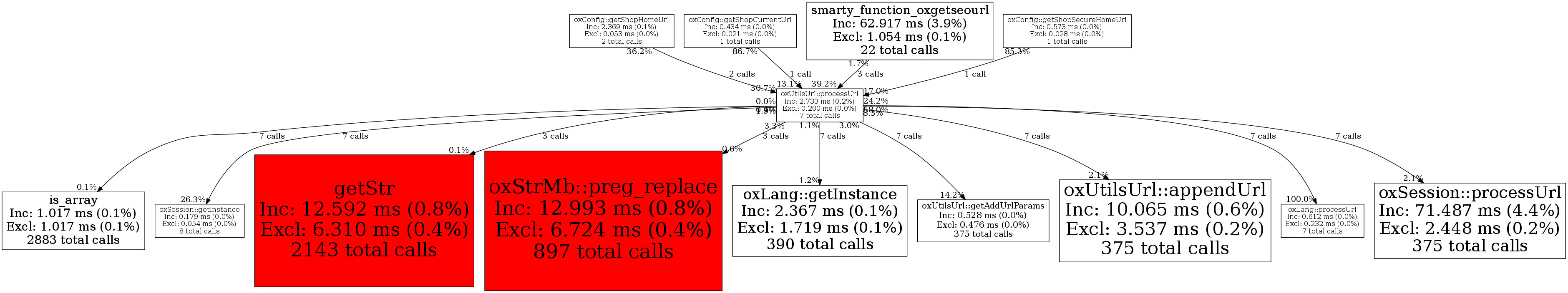| oxUtilsUrl::processUrl | 7 | 10.3% | 2,733 | 0.2% | 4,000 | 0.6% | 77,984 | 0.4% | 70,904 | 0.3% |
