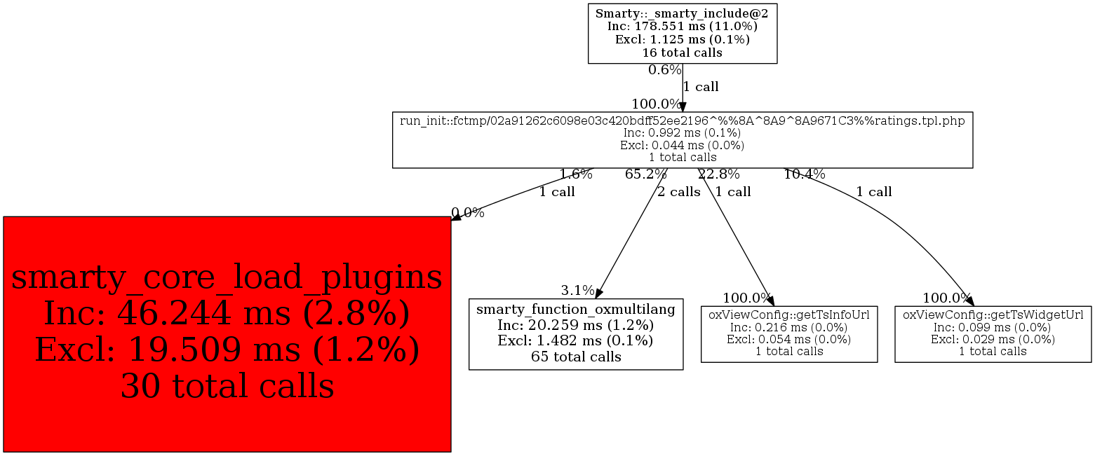 | smarty_core_load_plugins | 1 | 20.0% | 15 | 1.5% | 0 | 0.0% | 4,616 | 11.1% | 2,056 | 1.8% |