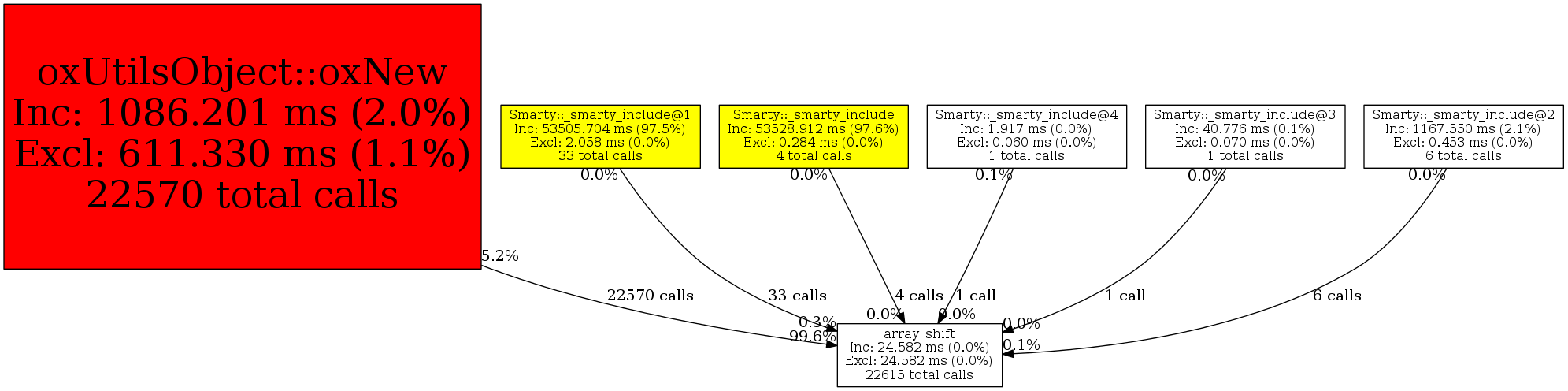 | oxUtilsObject::oxNew | 22,570 | 99.8% | 24,487 | 99.6% | 60,001 | 93.8% | -4,545,752 | -100.5% | 35,088 | 100.0% |