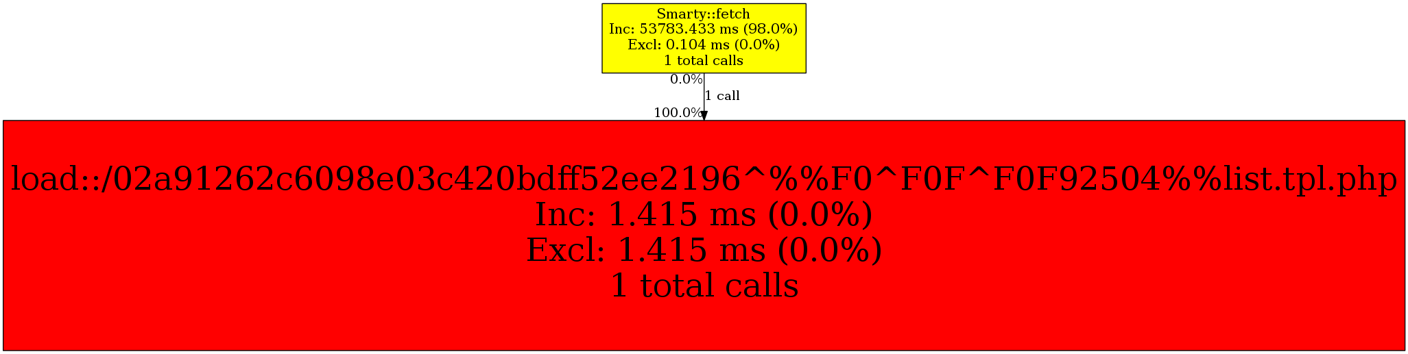 | Smarty::fetch | 1 | 100.0% | 1,415 | 100.0% | 0 | N/A% | 3,320 | 100.0% | 4,976 | 100.0% |