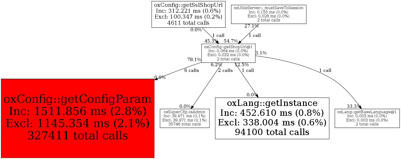 | oxConfig::getShopUrl@1 | 2 | 11.1% | 64 | 0.0% | 0 | 0.0% | 8,320 | 0.0% | 8,640 | 0.0% |