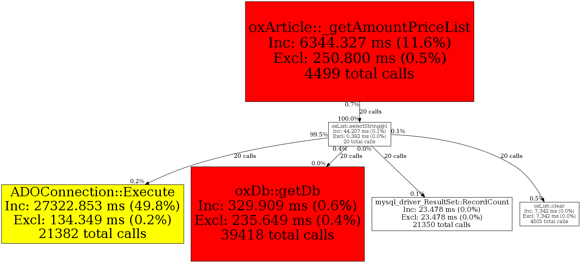 | ADOConnection::Execute | 20 | 25.0% | 43,603 | 98.6% | 4,000 | 100.0% | 126,480 | 1104.8% | 51,264 | 93.6% |