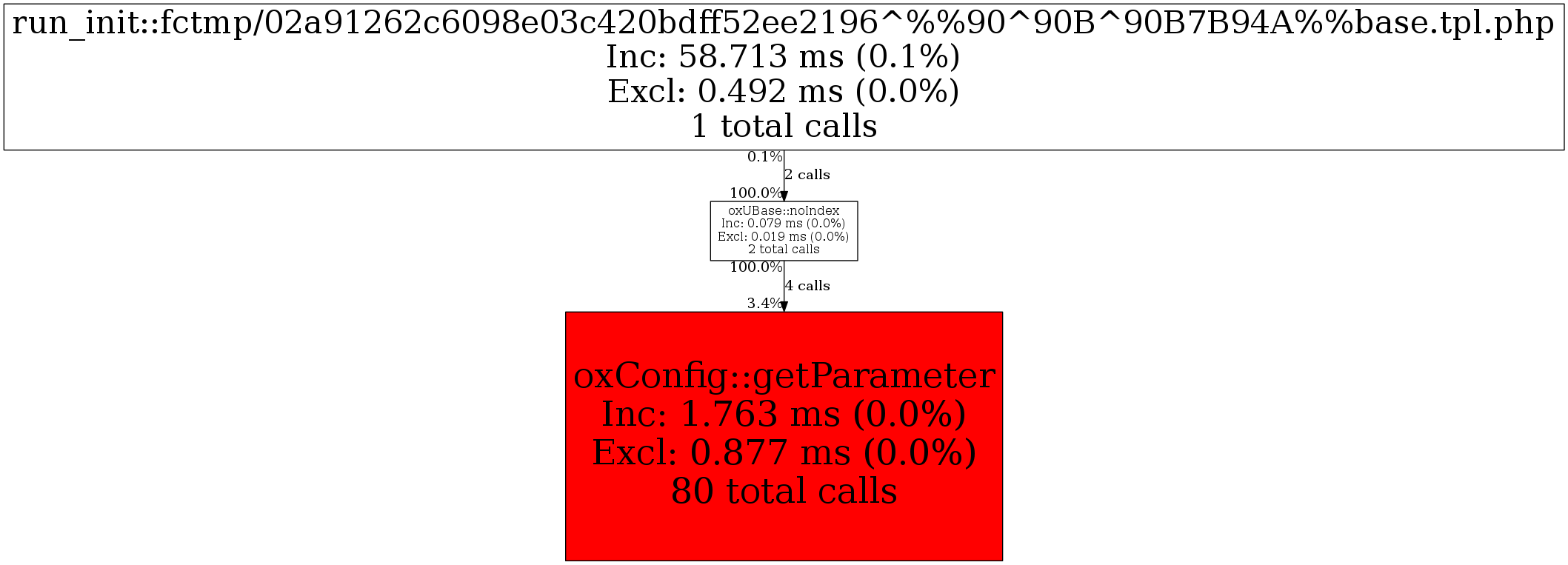 | oxConfig::getParameter | 4 | 100.0% | 60 | 75.9% | 0 | N/A% | 1,464 | 53.8% | 0 | N/A% |