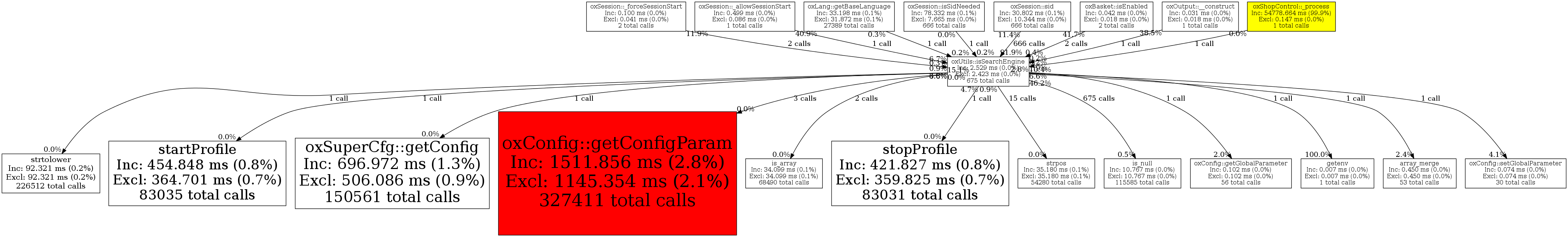 | oxConfig::getConfigParam | 3 | 0.4% | 16 | 0.6% | 0 | 0.0% | 1,112 | 3.8% | 792 | 3.0% |