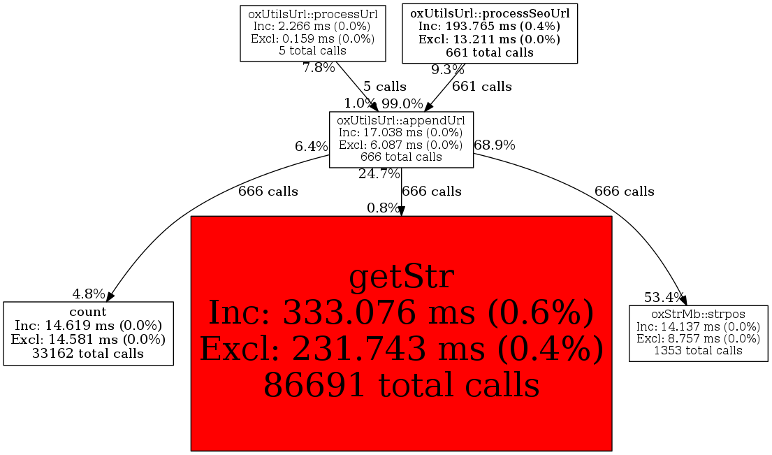 | oxUtilsUrl::processUrl | 5 | 0.8% | 165 | 1.0% | 0 | 0.0% | 6,400 | 4.7% | 5,896 | 82.5% |
