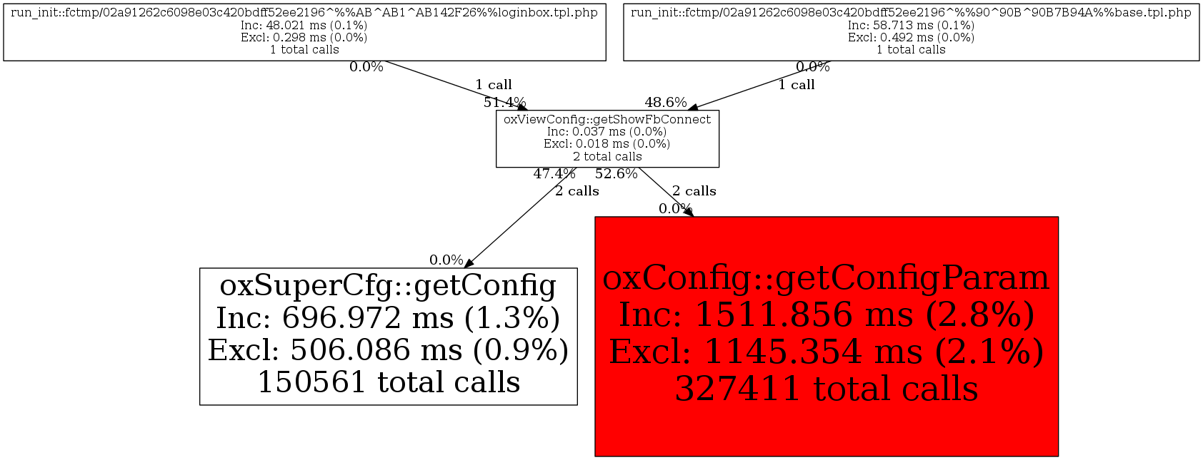 | oxConfig::getConfigParam | 2 | 50.0% | 10 | 27.0% | 0 | N/A% | 1,120 | 20.1% | 0 | N/A% |