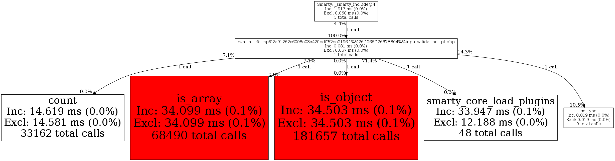 | Smarty::_smarty_include@4 | 1 | 100.0% | 81 | 100.0% | 0 | N/A% | 9,152 | 100.0% | 0 | N/A% |
