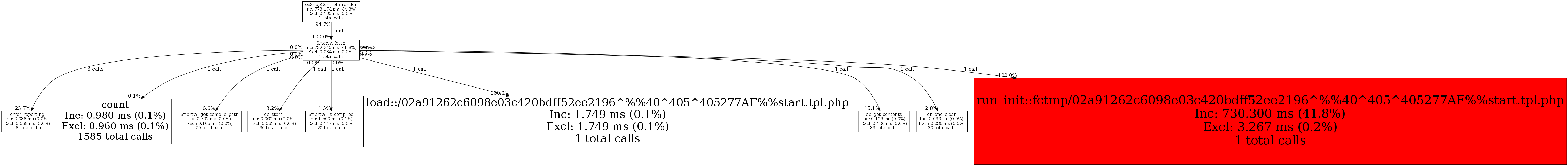 | Smarty::fetch | 1 | 2.0% | 732,240 | 41.9% | 320,020 | 34.9% | 3,657,600 | 14.8% | 3,935,312 | 15.7% |