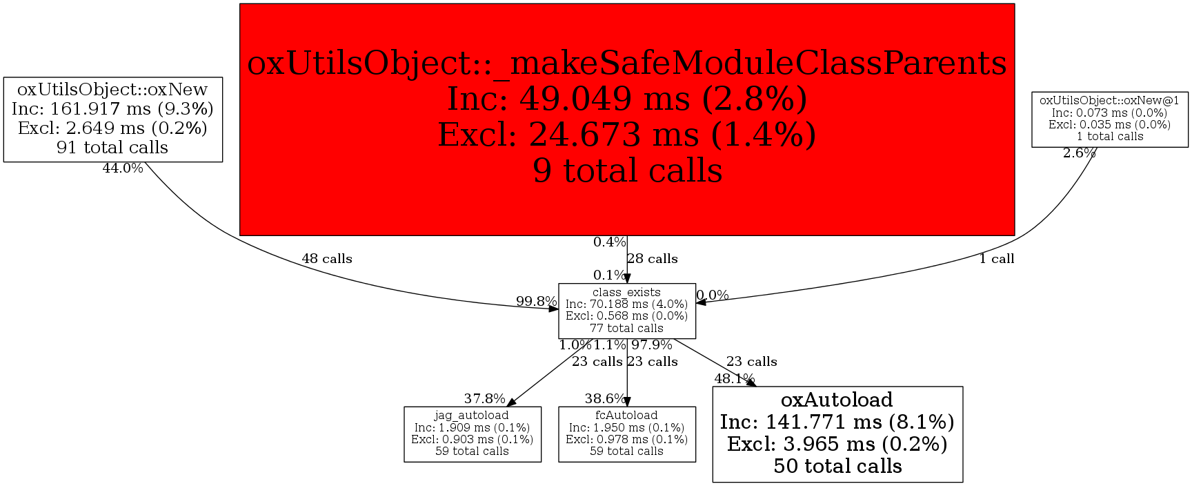 | oxUtilsObject::_makeSafeModuleClassParents | 28 | 36.4% | 105 | 0.1% | 0 | 0.0% | 4,704 | 0.3% | 6,824 | 0.5% |