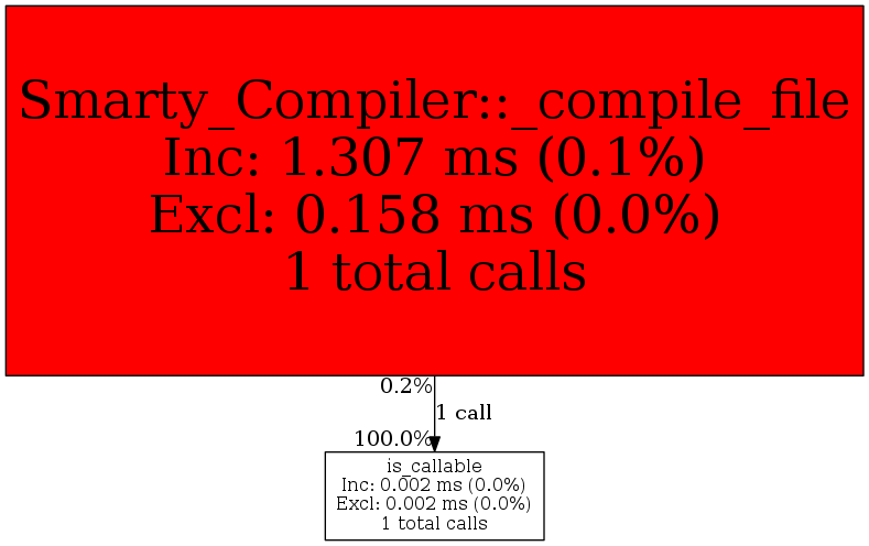 | Smarty_Compiler::_compile_file | 1 | 100.0% | 2 | 100.0% | 0 | N/A% | 1,104 | 100.0% | 0 | N/A% |
