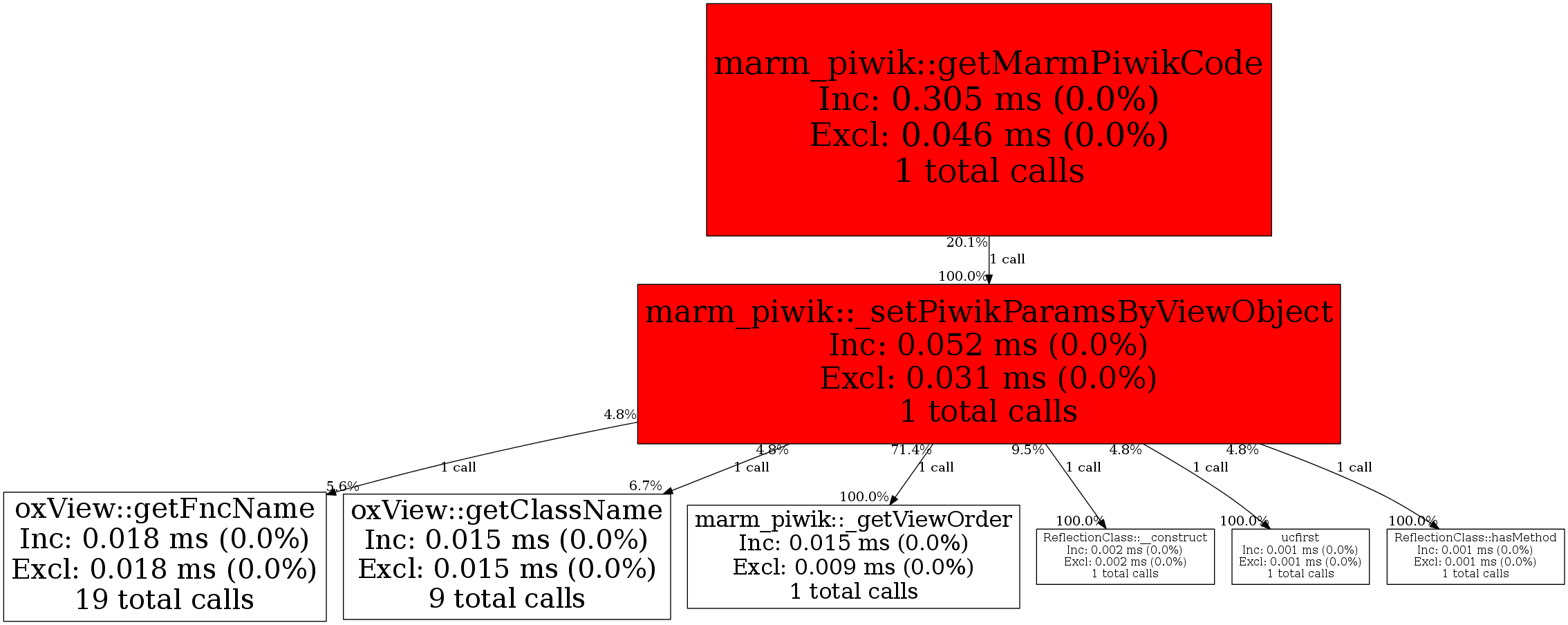 | marm_piwik::_setPiwikParamsByViewObject | 1 | 2.2% | 52 | 0.0% | 0 | 0.0% | 13,648 | 0.1% | 0 | 0.0% |