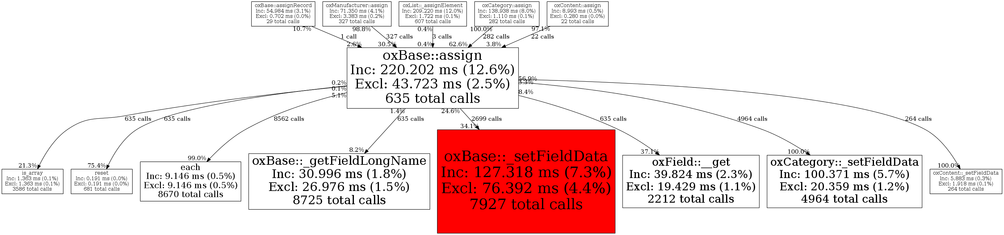 | oxBase::assign | 635 | 3.2% | 220,202 | 12.6% | 232,016 | 25.3% | 5,768,888 | 23.4% | 6,554,664 | 26.1% |