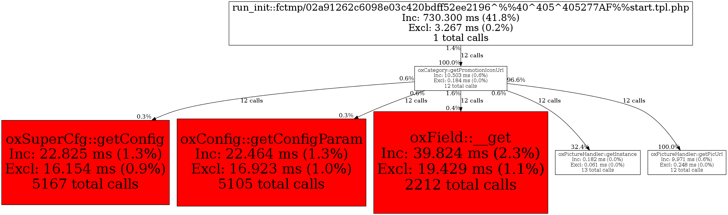 | oxCategory::getPromotionIconUrl | 12 | 10.8% | 10,503 | 0.6% | 4,000 | 0.4% | 48,824 | 0.2% | 47,096 | 0.2% |