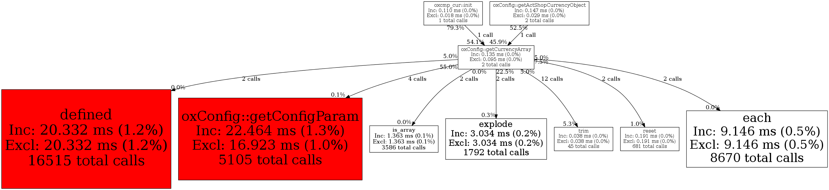 | oxConfig::getCurrencyArray | 2 | 3.0% | 135 | 0.0% | 0 | 0.0% | 18,456 | 0.1% | 20,272 | 0.1% |