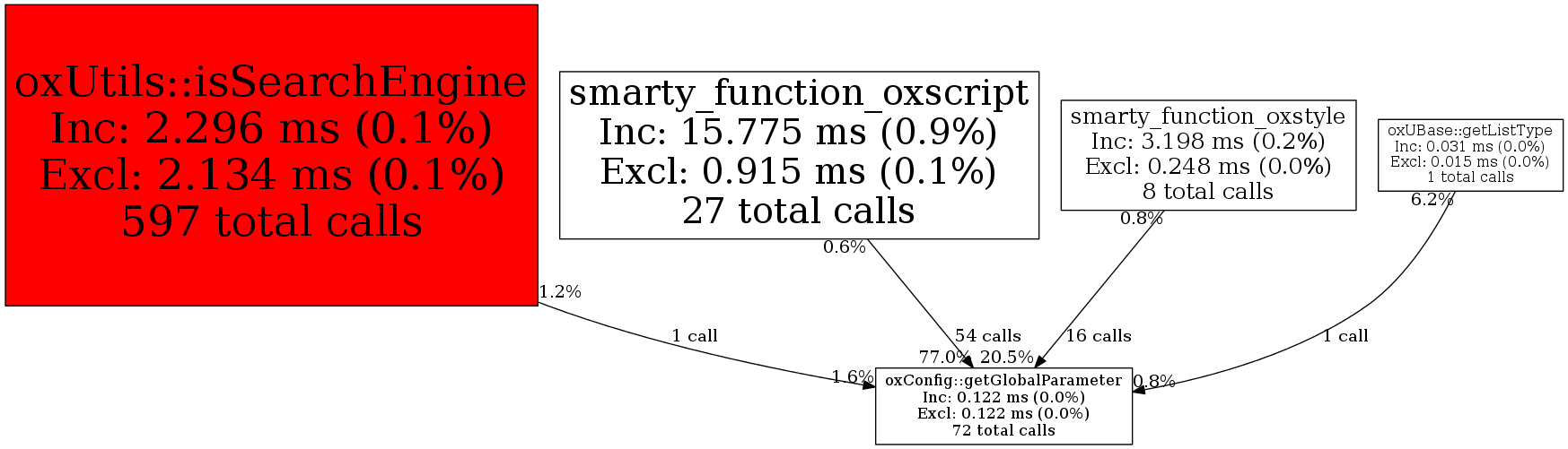 | oxConfig::getGlobalParameter | 72 | 64.9% | 122 | 0.0% | 0 | 0.0% | 5,648 | 0.0% | 3,008 | 0.0% |