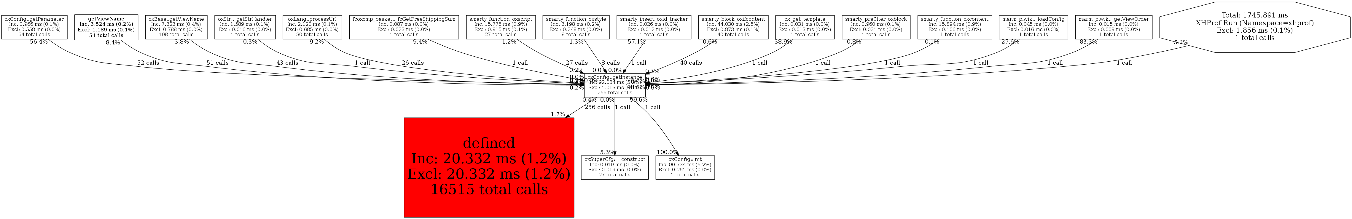 | oxConfig::getInstance | 256 | 46.4% | 92,084 | 5.3% | 24,001 | 2.6% | 1,984,008 | 8.0% | 1,987,680 | 7.9% |