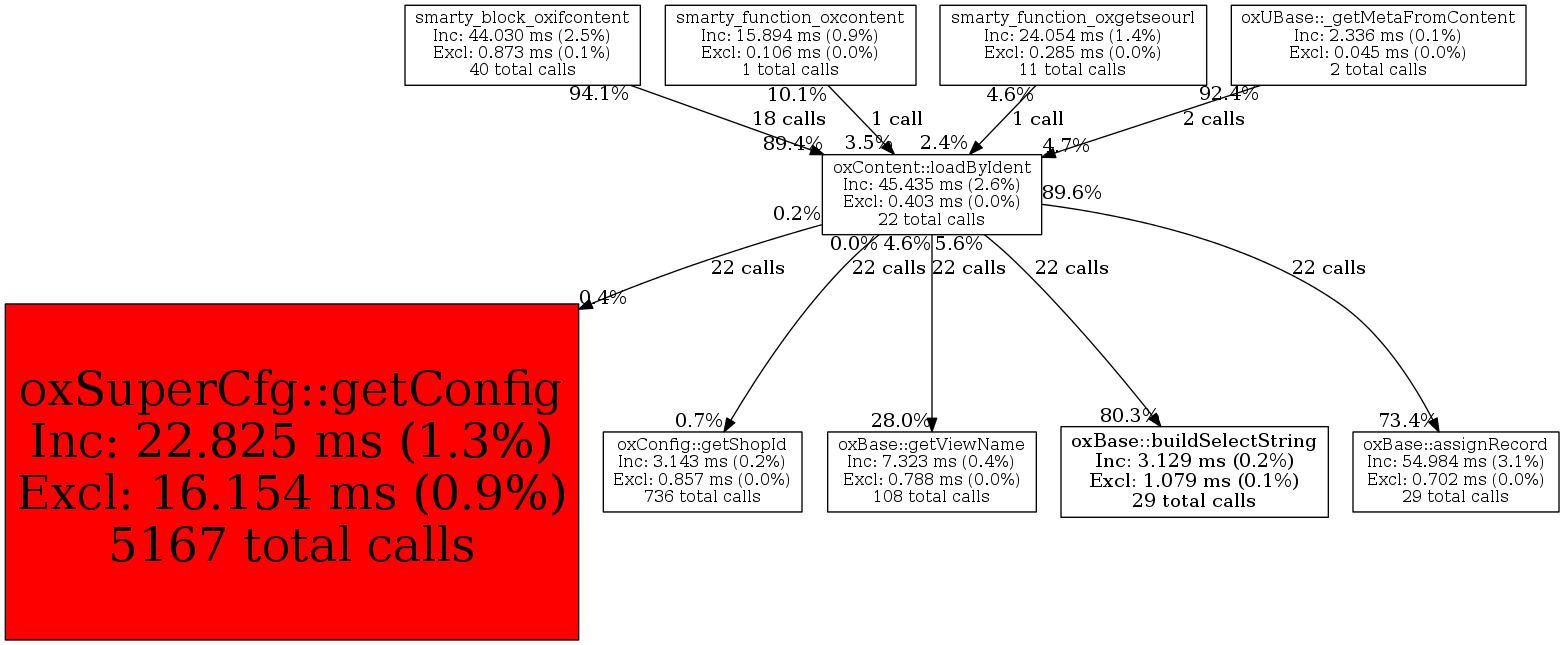 | oxContent::loadByIdent | 22 | 12.9% | 45,435 | 2.6% | 16,001 | 1.7% | 406,824 | 1.6% | 177,552 | 0.7% |