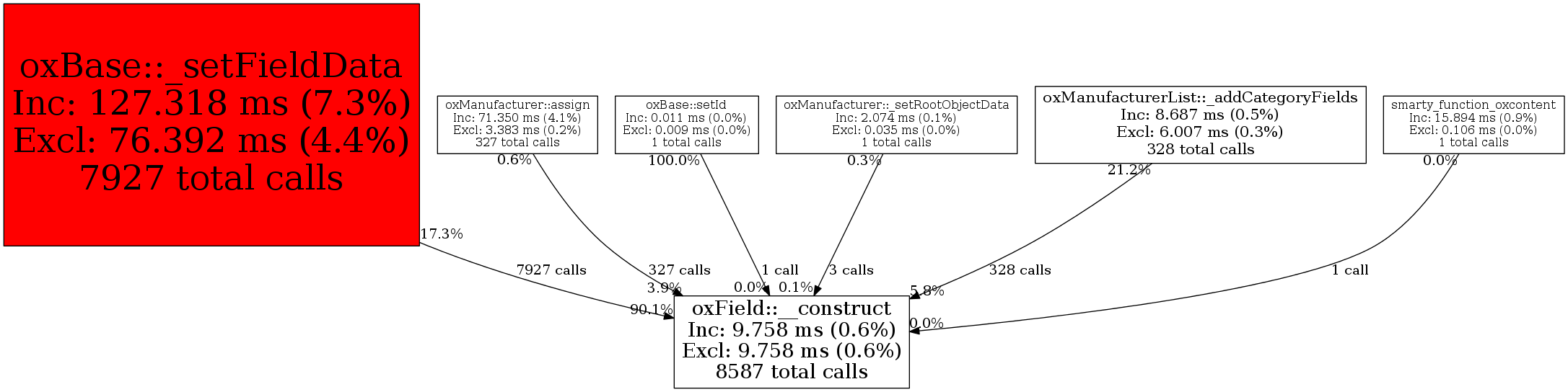 | oxBase::_setFieldData | 7,927 | 92.3% | 8,794 | 90.1% | 8,001 | 100.0% | 1,015,760 | 91.9% | 1,368 | 1.8% |
