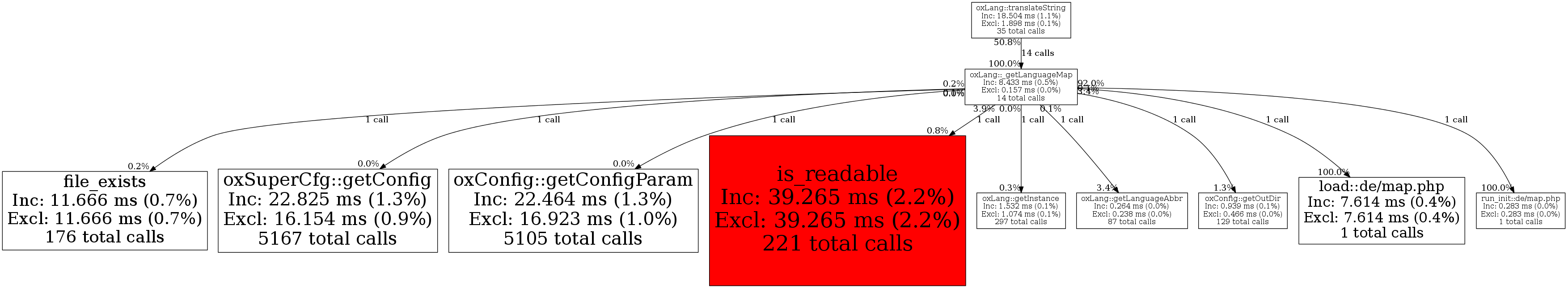 | oxLang::_getLanguageMap | 14 | 22.6% | 8,433 | 0.5% | 4,000 | 0.4% | 280,736 | 1.1% | 272,240 | 1.1% |