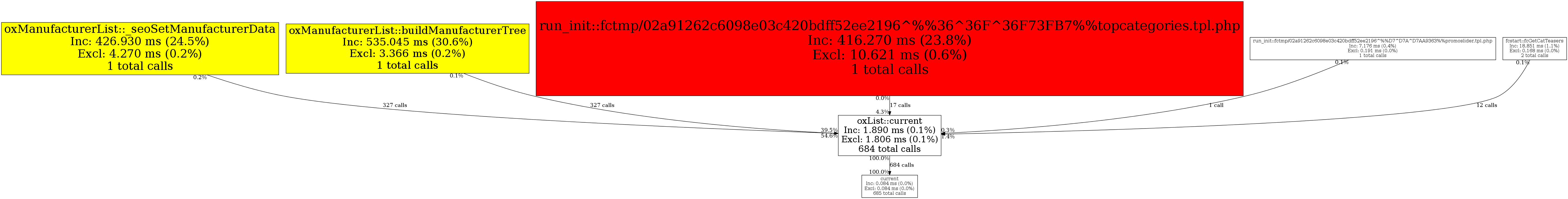 | oxManufacturerList::buildManufacturerTree | 327 | 47.8% | 747 | 39.5% | 0 | N/A% | 28,784 | 46.5% | 0 | 0.0% |