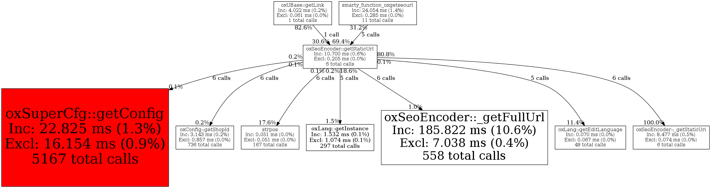 | oxUBase::getLink | 1 | 16.7% | 3,273 | 30.6% | 4,000 | 50.0% | 40,720 | 78.7% | 42,152 | 100.0% |