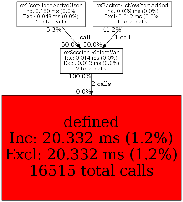 | oxSession::deleteVar | 2 | 4.7% | 14 | 0.0% | 0 | 0.0% | 3,712 | 0.0% | 2,208 | 0.0% |