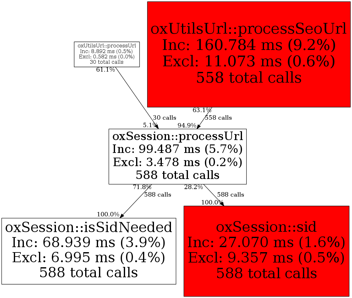 | oxSession::processUrl | 588 | 32.6% | 99,487 | 5.7% | 112,009 | 12.2% | 43,328 | 0.2% | 47,152 | 0.2% |