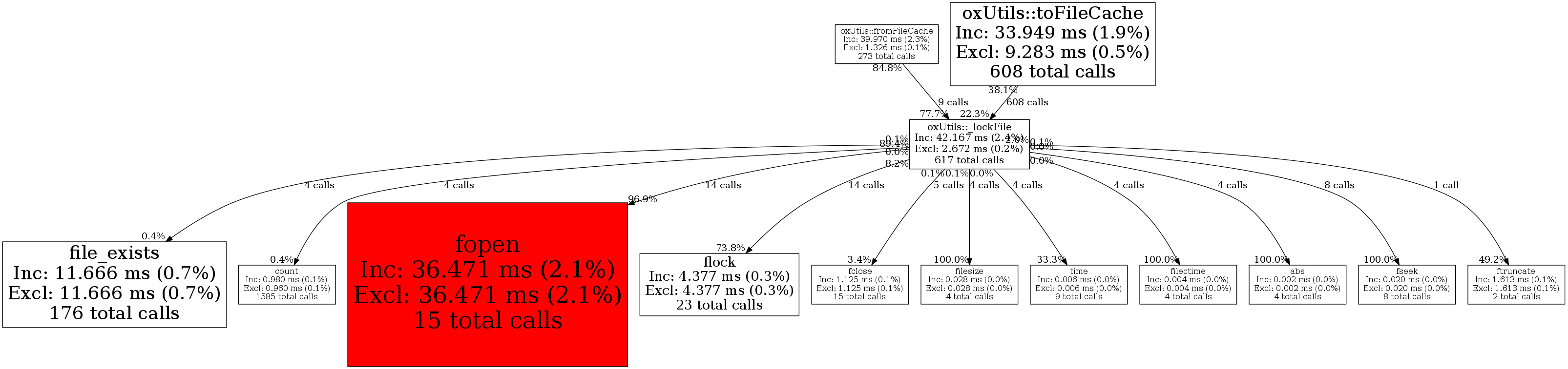 | oxUtils::_lockFile | 617 | 85.5% | 42,167 | 2.4% | 12,001 | 1.3% | 90,400 | 0.4% | 29,384 | 0.1% |