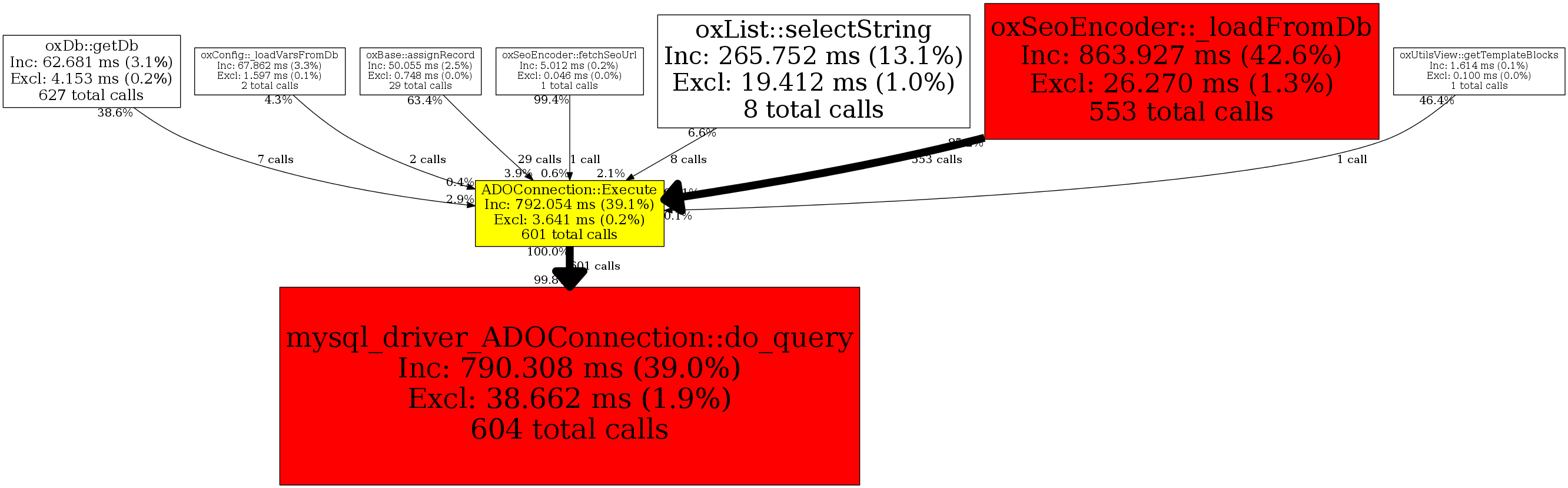 | ADOConnection::Execute | 601 | 48.4% | 792,054 | 39.1% | 112,006 | 11.5% | 4,299,776 | 17.4% | 599,560 | 2.4% |