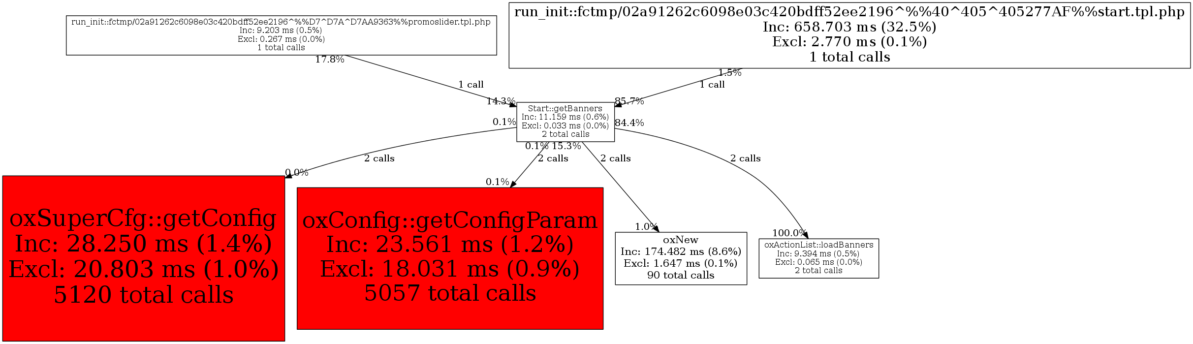 | Start::getBanners | 2 | 4.1% | 11,159 | 0.6% | 4,000 | 0.4% | 185,568 | 0.8% | 162,416 | 0.6% |