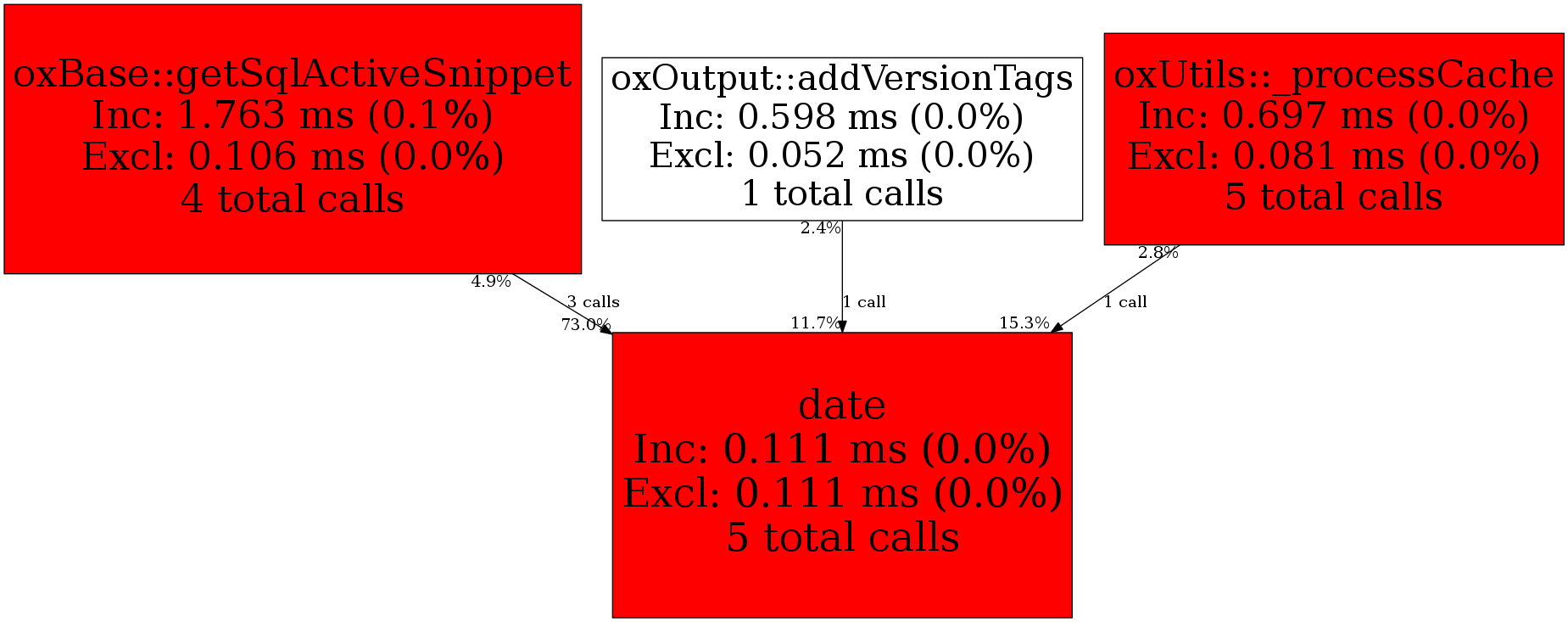 | oxOutput::addVersionTags | 1 | 20.0% | 13 | 11.7% | 0 | N/A% | 1,216 | 28.4% | 0 | 0.0% |