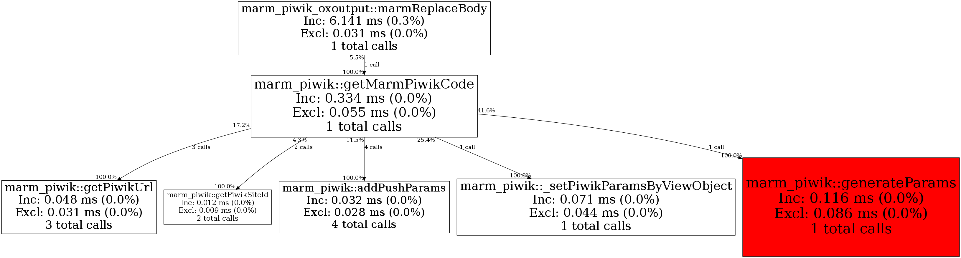 | marm_piwik::generateParams | 1 | 9.1% | 116 | 34.7% | 0 | N/A% | 11,984 | 26.5% | 0 | N/A% |