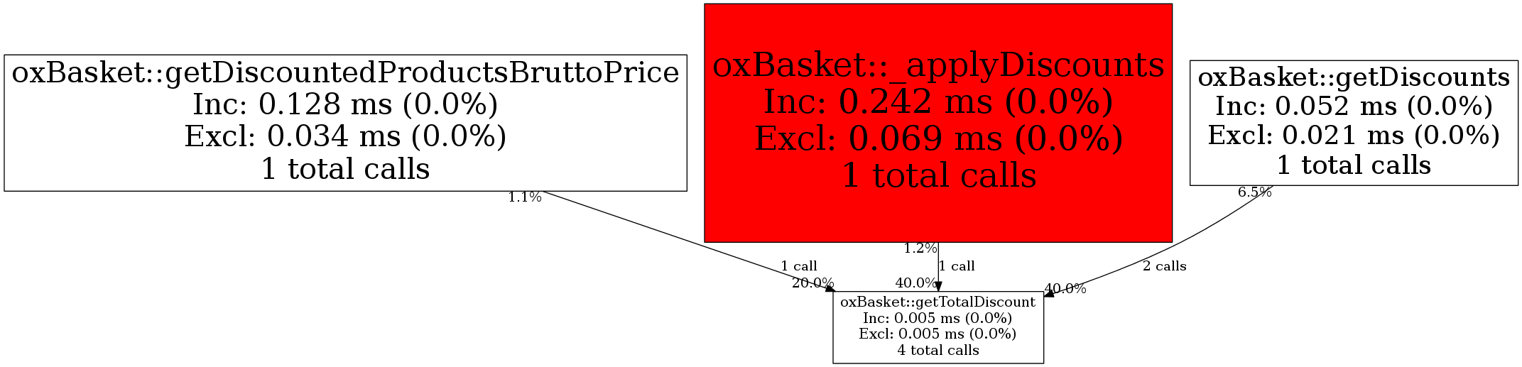 | oxBasket::getTotalDiscount | 4 | 9.3% | 5 | 0.0% | 0 | 0.0% | 3,352 | 0.0% | 3,352 | 0.0% |