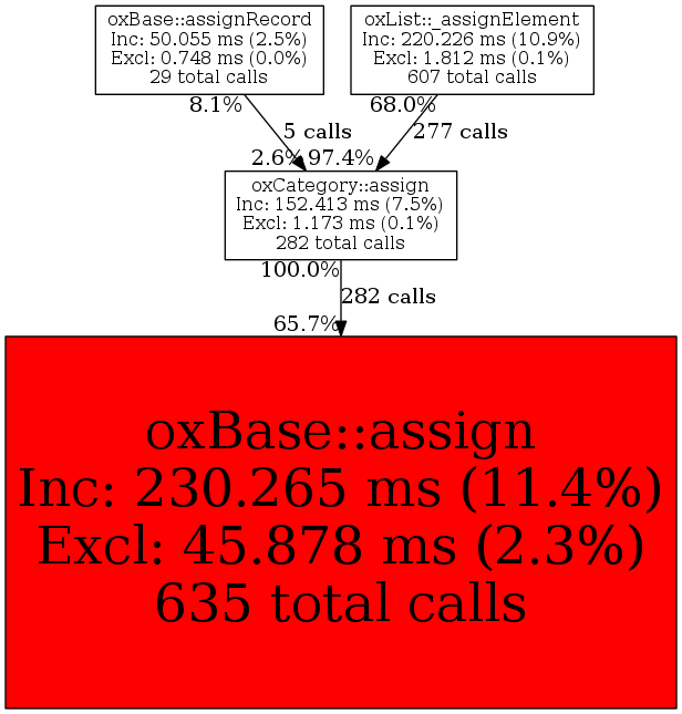 | oxCategory::assign | 282 | 46.8% | 152,413 | 7.5% | 156,010 | 16.0% | 3,723,088 | 15.1% | 4,161,624 | 16.5% |