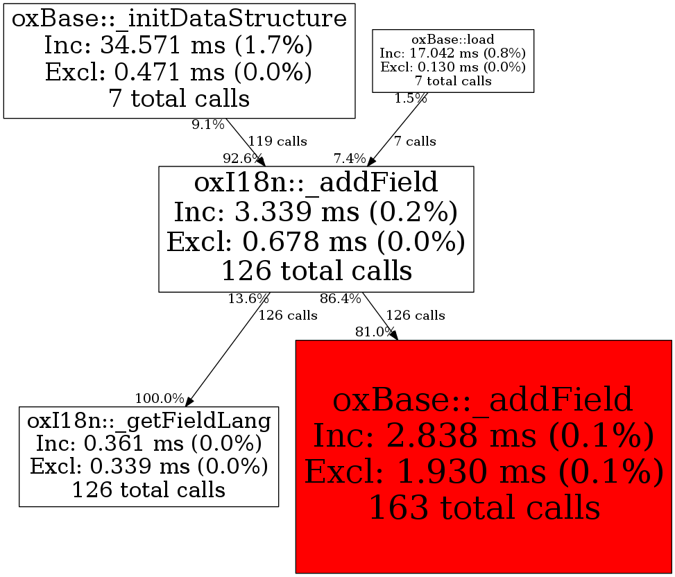 | oxI18n::_addField | 126 | 30.2% | 3,339 | 0.2% | 4,001 | 0.4% | 120,040 | 0.5% | 58,256 | 0.2% |