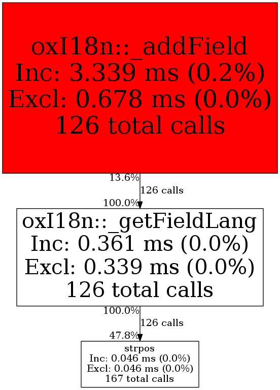 | oxI18n::_getFieldLang | 126 | 43.3% | 361 | 0.0% | 0 | 0.0% | 12,688 | 0.1% | 4,688 | 0.0% |