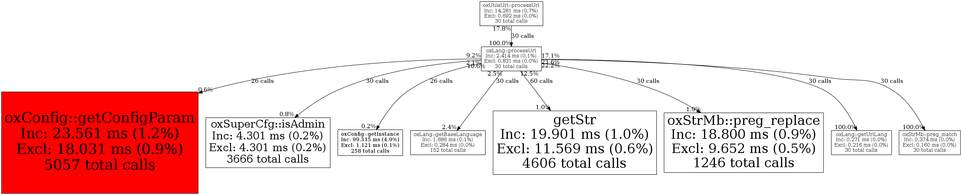 | oxLang::processUrl | 30 | 9.1% | 2,414 | 0.1% | 12,001 | 1.2% | 25,448 | 0.1% | 27,760 | 0.1% |