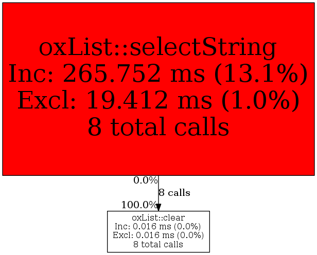 | oxList::clear | 8 | 17.0% | 16 | 0.0% | 0 | 0.0% | 3,600 | 0.0% | 1,168 | 0.0% |