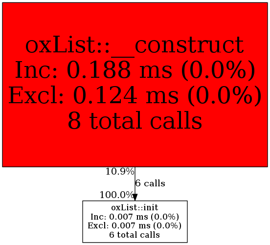 | oxList::init | 6 | 13.3% | 7 | 0.0% | 0 | 0.0% | 1,096 | 0.0% | 1,016 | 0.0% |