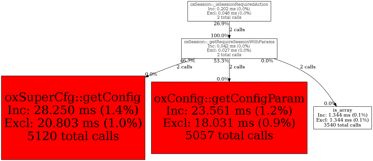 | oxSession::_getRequireSessionWithParams | 2 | 4.3% | 42 | 0.0% | 0 | 0.0% | 5,744 | 0.0% | 3,432 | 0.0% |